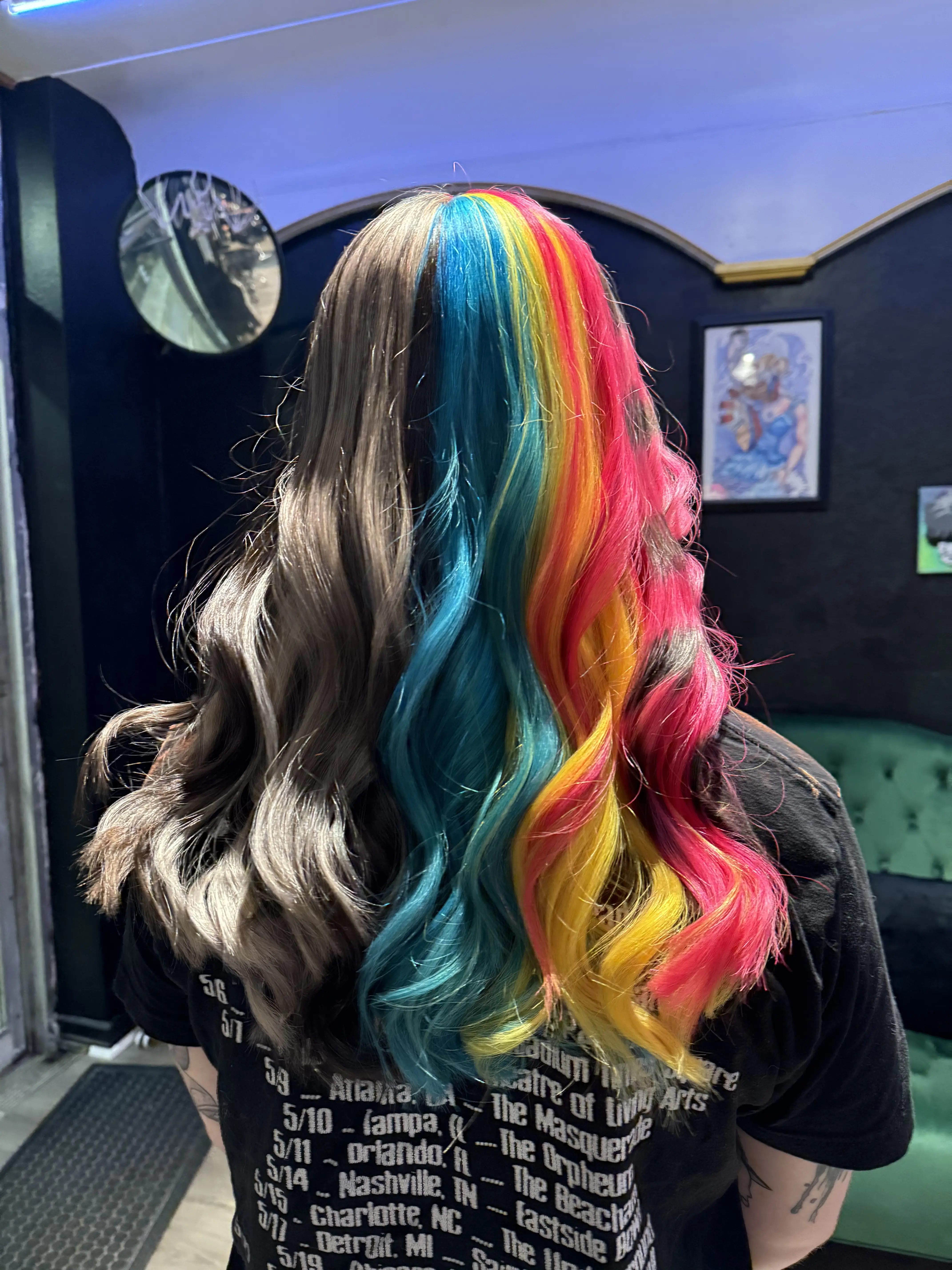 THE PRICE IS A STARTING PRICE. Want to get killer color at a discounted price? I post hair flash (like flash tattoos!) seasonally. Each look is only available ONE time! Check out my Instagram to see available flash listings, book this service and specify which flash you are booking! *All-over transformations include 4 bowls (8oz) of lightener and 8oz of color. Partial transformations include 2 bowls (4oz) of lightener and 4oz of color. $20 fee per bowl for lightener/color for additional bowls.