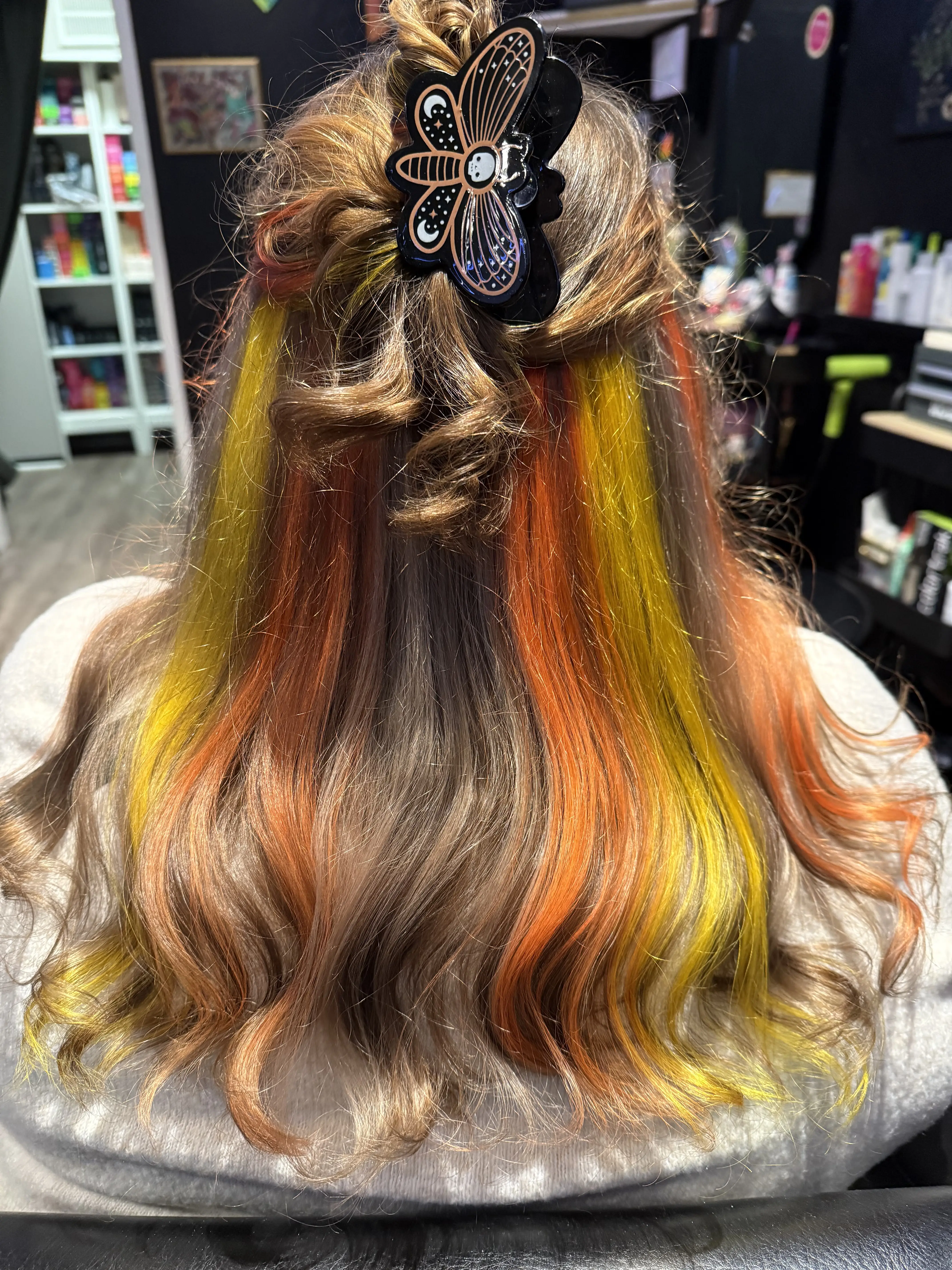 want a pop of color, more fullness around your face, or even a custom-painted pattern? tape in extensions are available!